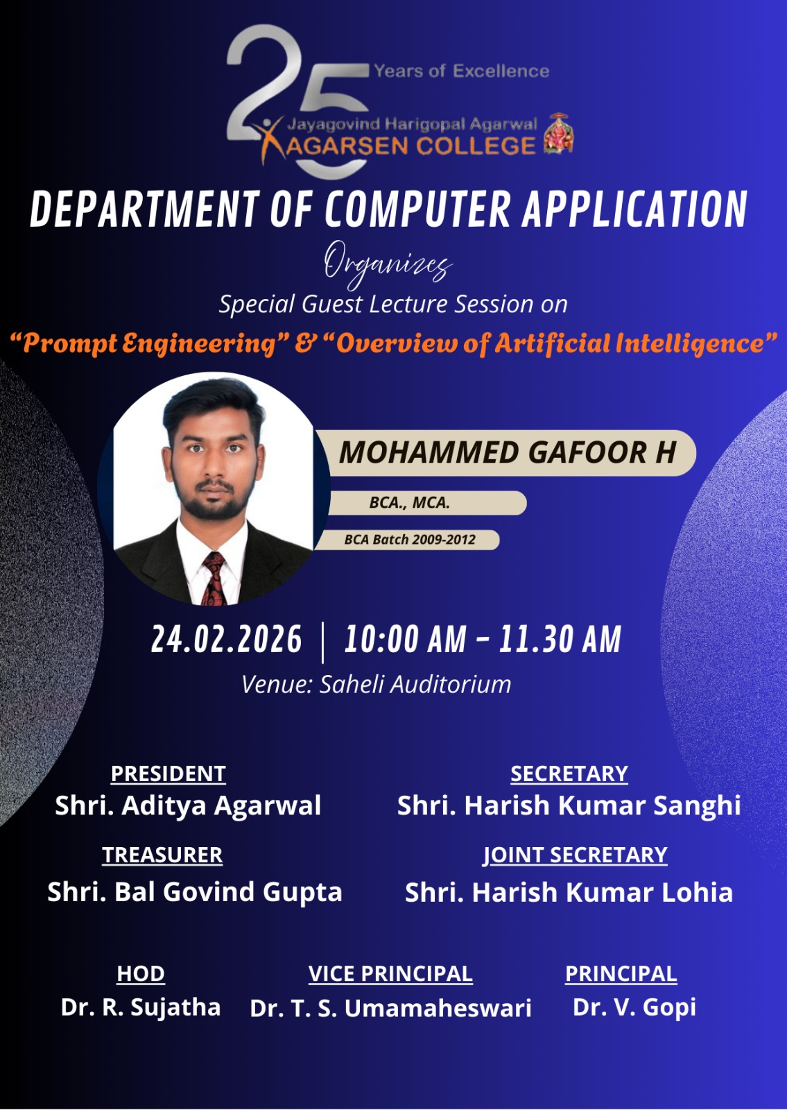 - Alumni Talk Series cum Seminar The program was conducted with the objective of motivating students, strengthening alumni relations, and providing career guidance through alumni interaction – Department of Computer Application 26-01-2026